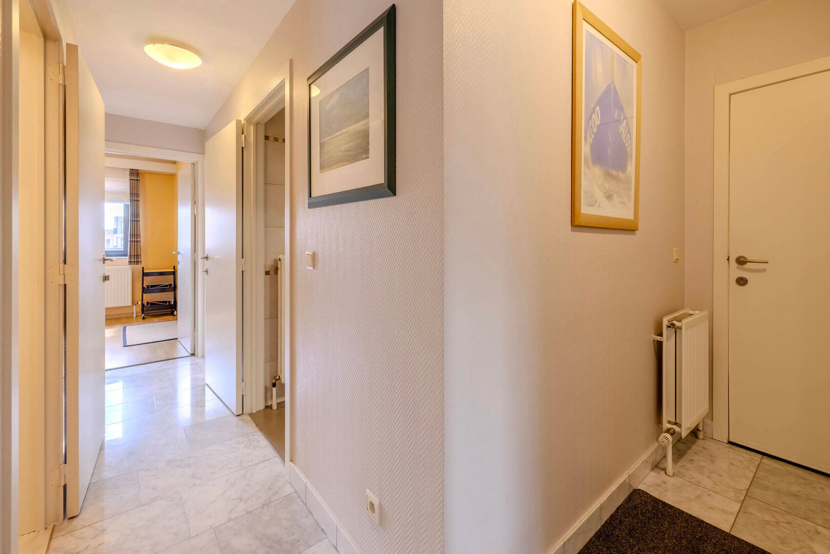 Het appartement bevindt zich in een goed onderhouden gebouw met inkomhal afgewerkt met witte marmeren vloer.