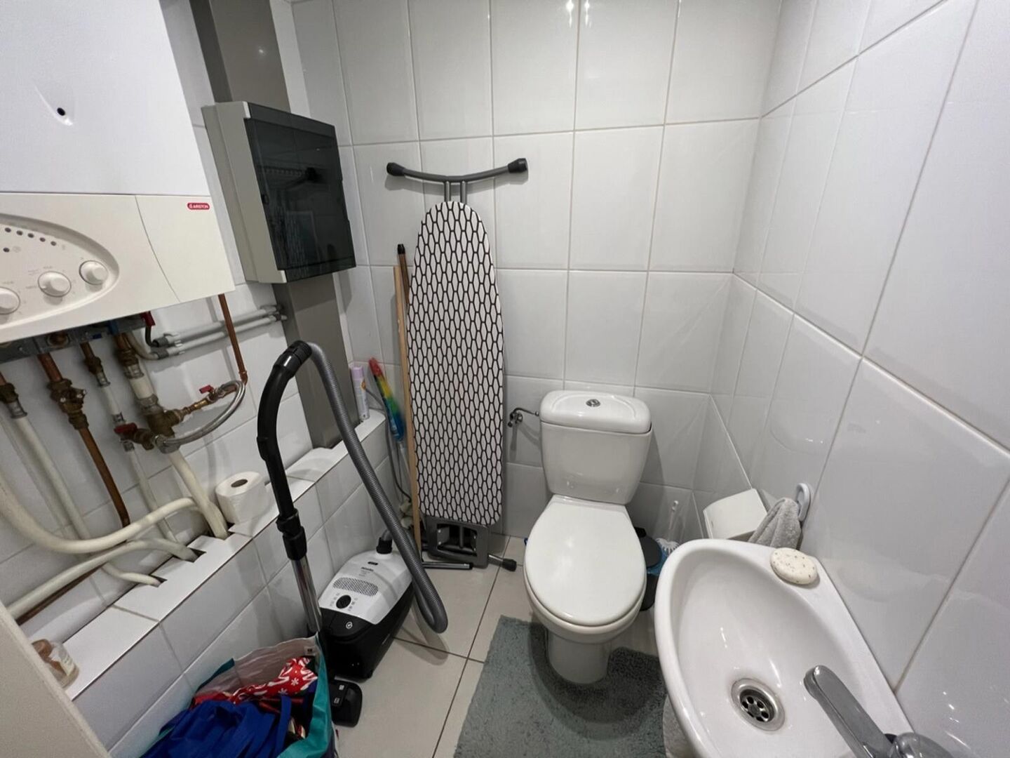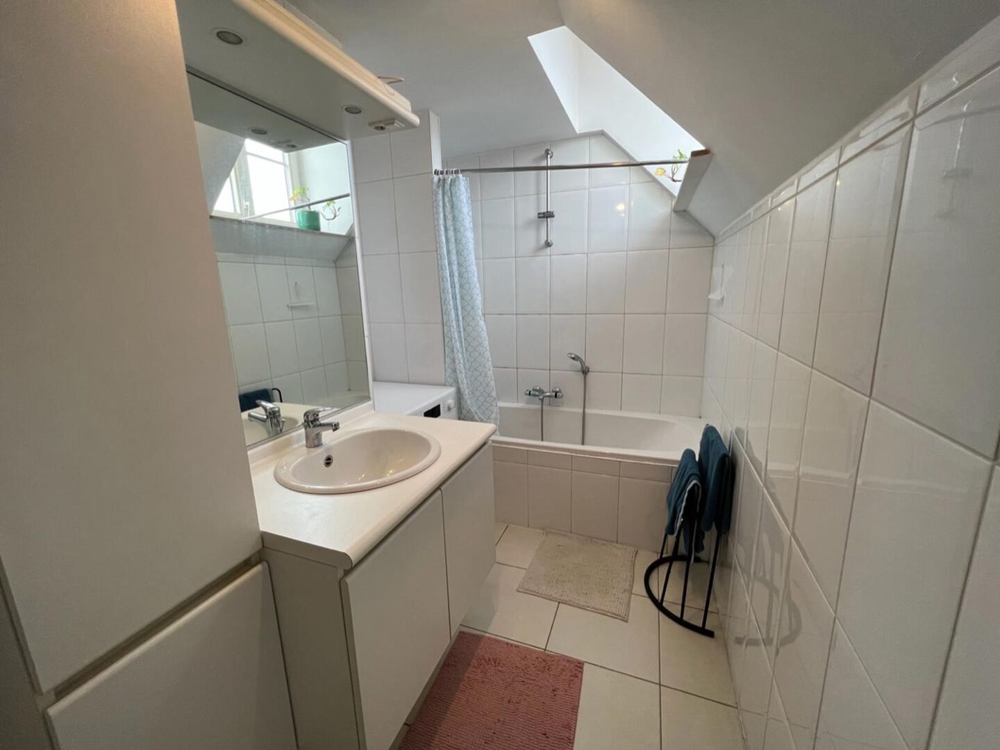 Indeling: toilet met extra bergruimte; gezellige woonkamer met zicht en toegang tot het zonnig zuidgericht terras; open geïnstalleerde keuken (geen vaatwasser); betegelde badkamer bevat lavabo, douche in bad en aansluiting wasmachine.