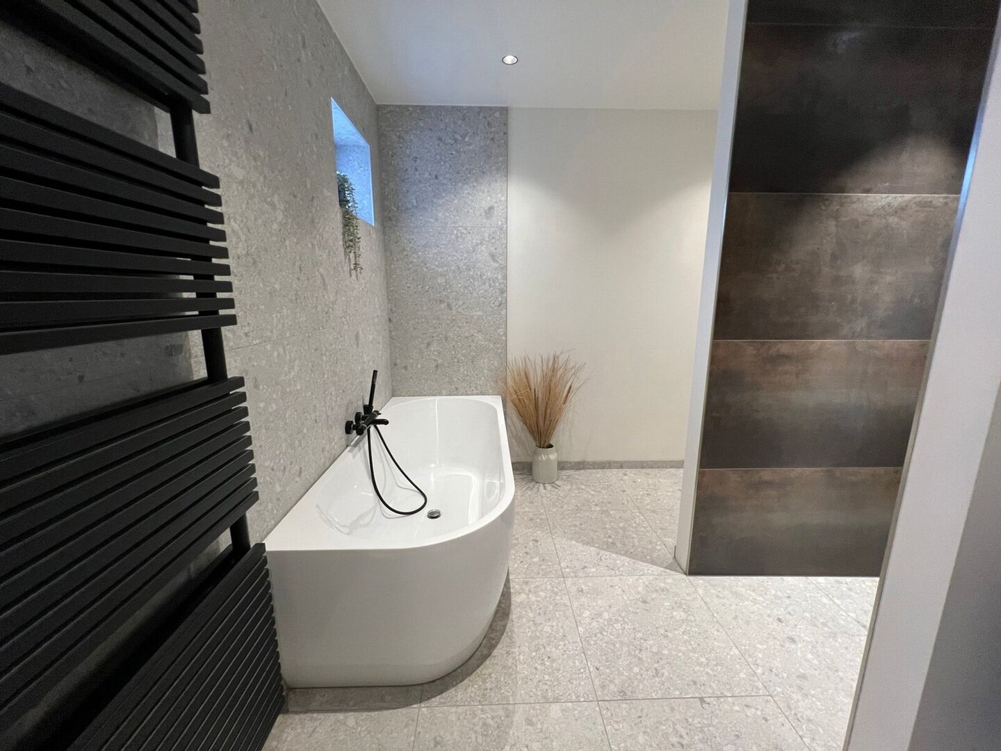 Indeling GLV: inkomhal; bureauruimte; apart toilet; badkamer bevat bad, inloopdouche, dubbele lavabo en aanpalende wasplaats; open en lichtrijke leefruimte; volledig geïnstalleerde keuken.