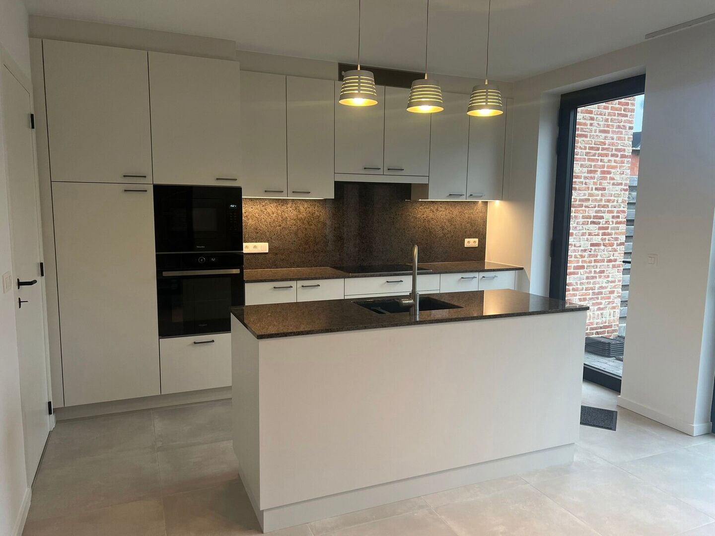 Gelijkvloers: inkom met ingemaakte kast, gastentoilet, ruime woonkamer, open keuken voorzien van de nodige toestellen, berging