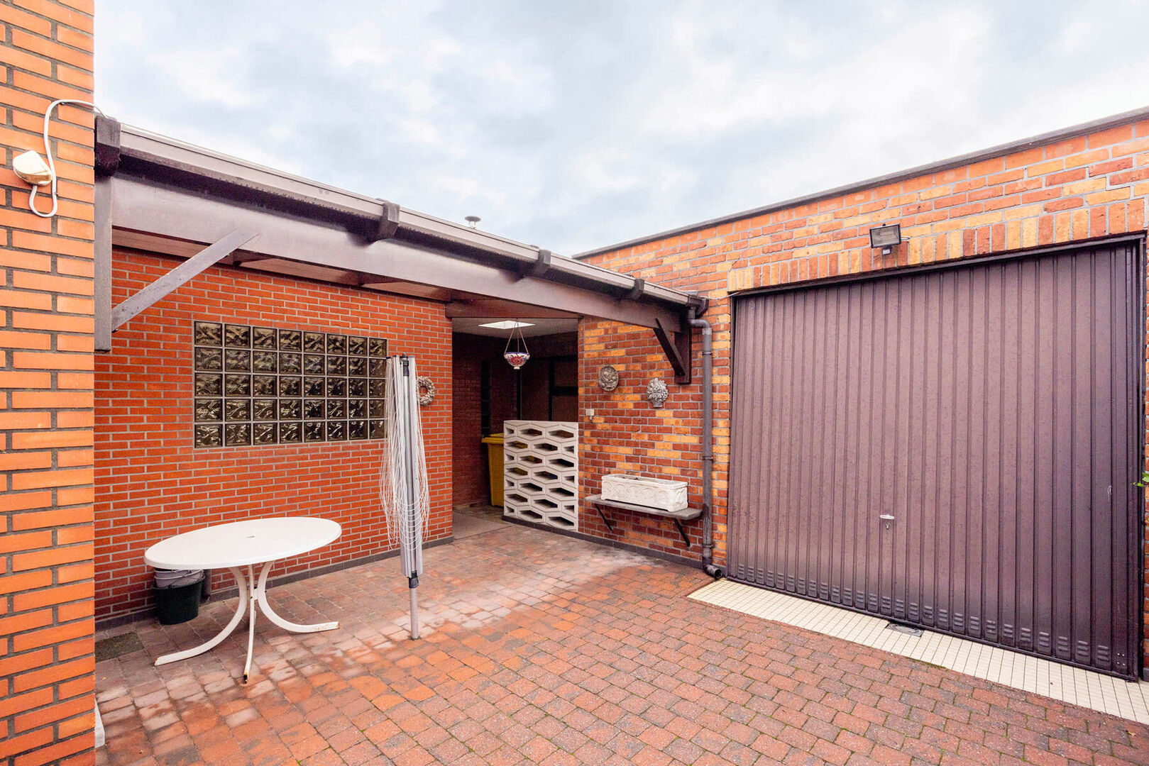 Ruime voortuin en oprit voorzien van meerdere parkeerplaatsen; achteraan beklinkerd en overdekt terras.