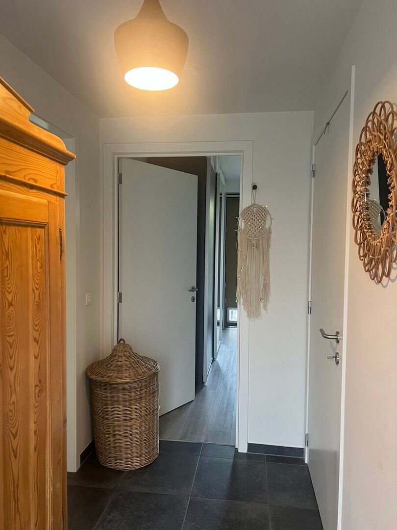 Indeling: inkom met ingemaakte kast, apart gastentoilet, badkamer met douche, ruime slaapkamer, keuken voorzien van de nodige toestellen, berging met aansluiting WM, lichtrijke leefruimte, terras, tuin, autostaanplaats en kelderberging.