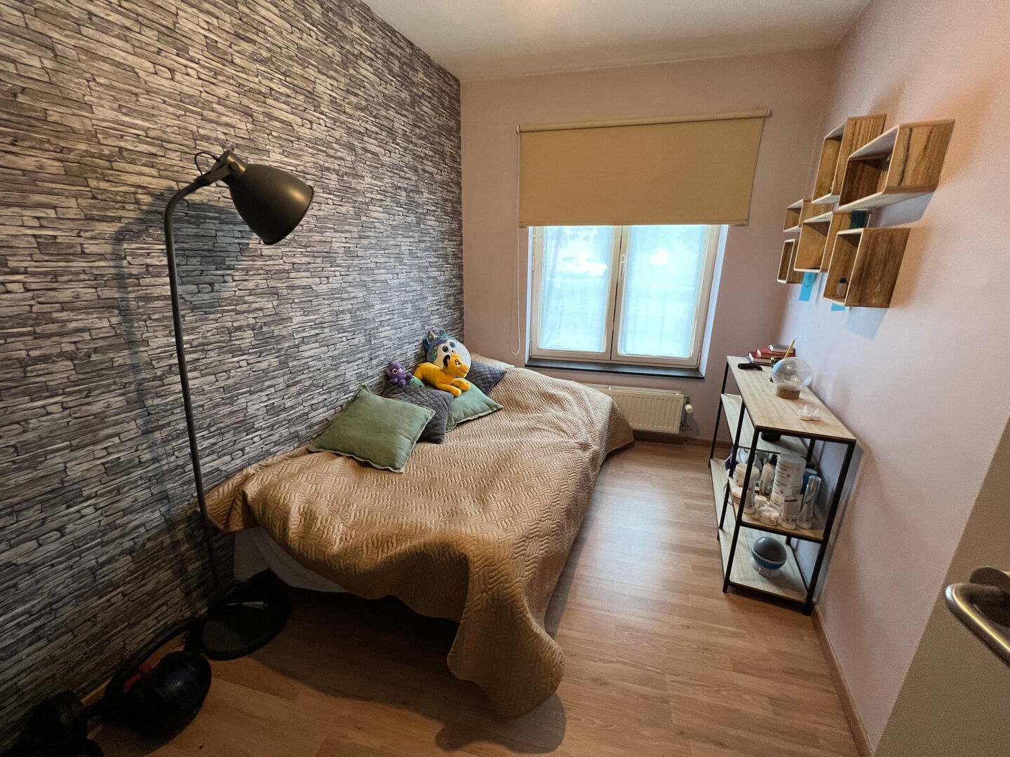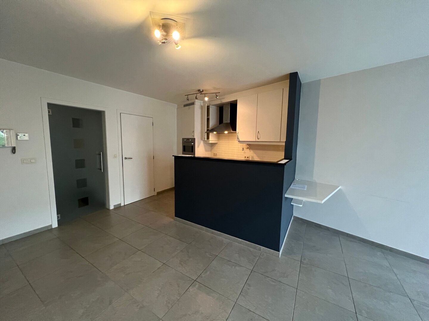Indeling: inkomhal; gastentoilet; 2 slaapkamers waarvan één met grote ingemaakte kast; badkamer bevat douche in bad en lavabo; berging met aansluiting voor WM/DK; woonkamer met open geïnstalleerde keuken voorzien van de nodige toestellen; toegang naar het volledig omheind en ZW-gericht terras / tuintje.
