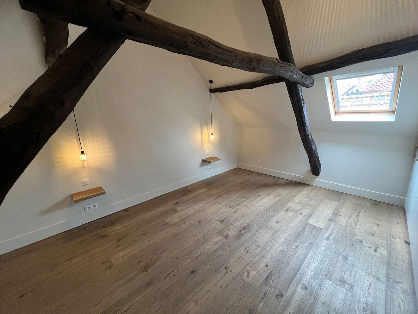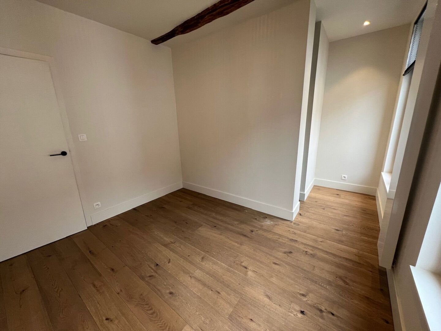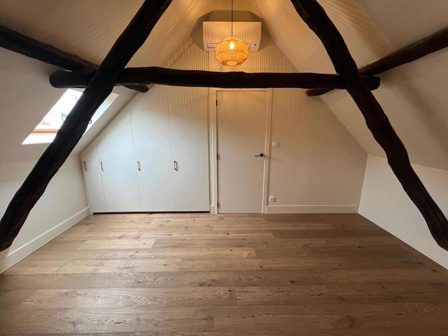 2V: zolder ingericht als masterbedroom met airco en ingemaakte kast.