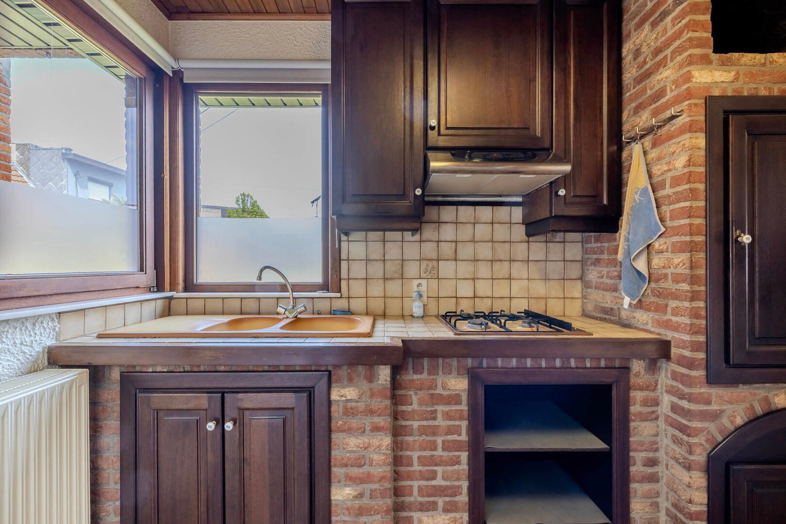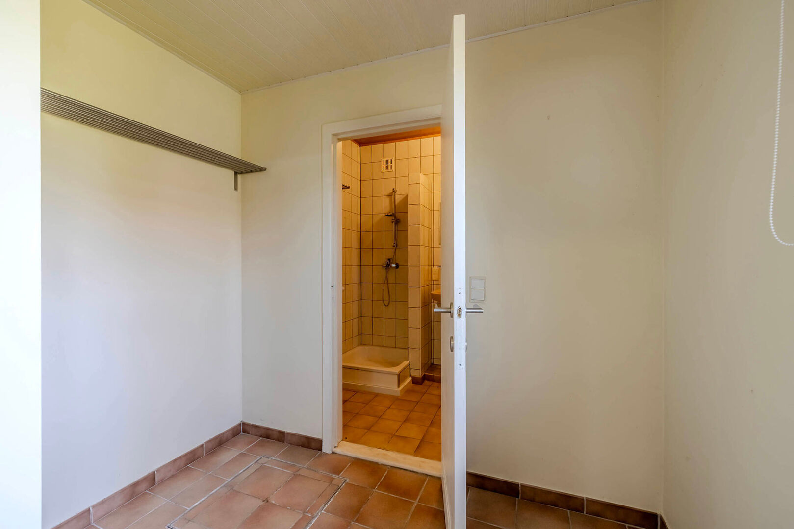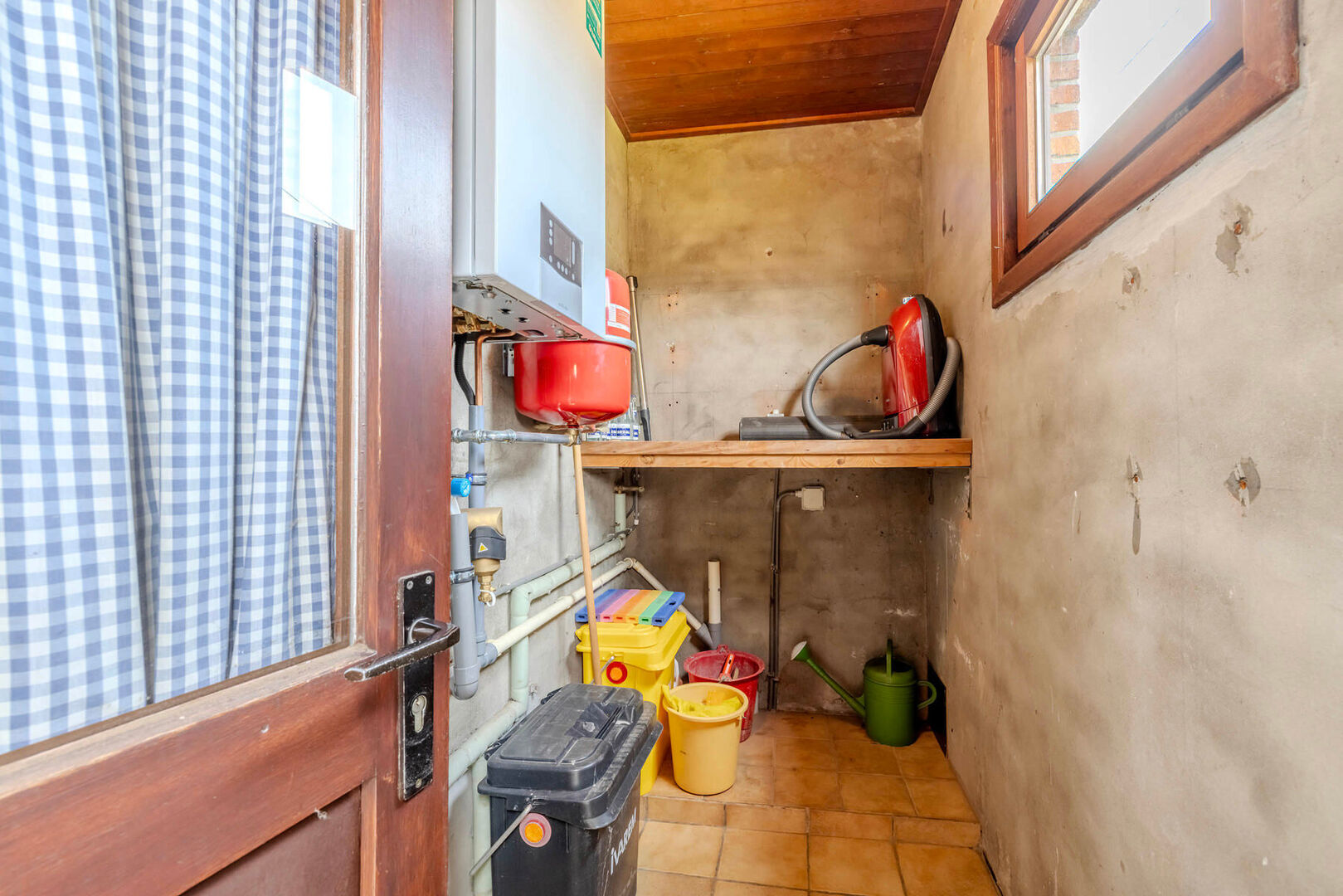 Naast de woning bevindt zich een servitudeweg van 1,10m en toegang naar de buitenberging.