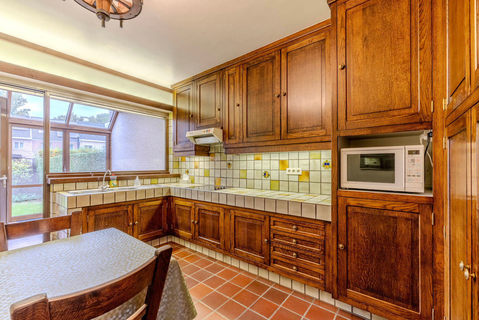 Gelijkvloers: inkom met ingemaakte kasten, gastentoilet, ruime lichtrijke leefruimte, aansluitend een praktische keuken, berging en veranda.