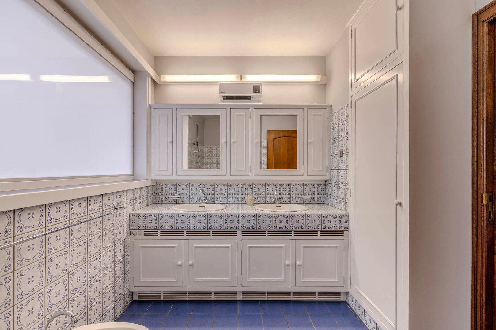 Eerste verdieping: nachthal, badkamer met bad en dubbele lavabo, apart toilet, 3 ruime slaapkamers.