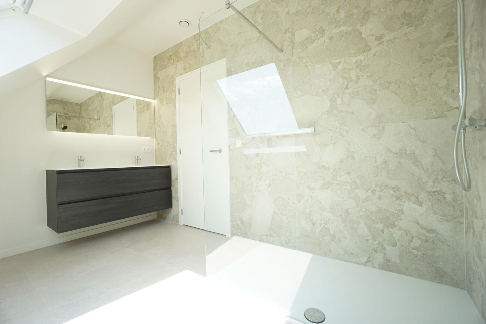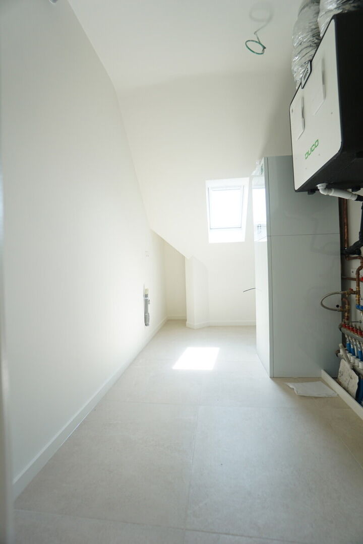 Dit pareltje van 104m2 (excl. terras) bestaat uit een ruime leefruimte met open keuken, badkamer met inloopdouche, bergruimte voor wasmachine en droogkast, apart toilet, 2 slaapkamers en zolderruimte. In de keuken werd er een vaatwasser voorzien, elektrische kookplaat, dampkap, ijskast en oven. De gemeenschappelijke lift is voorzien van een sleutel waarmee u rechtstreeks in uw woongedeelte uitkomt! Er is een mogelijkheid om een aparte garagebox bij te huren aan 100 euro/maand, dewelke zich achteraan het appartement bevindt.