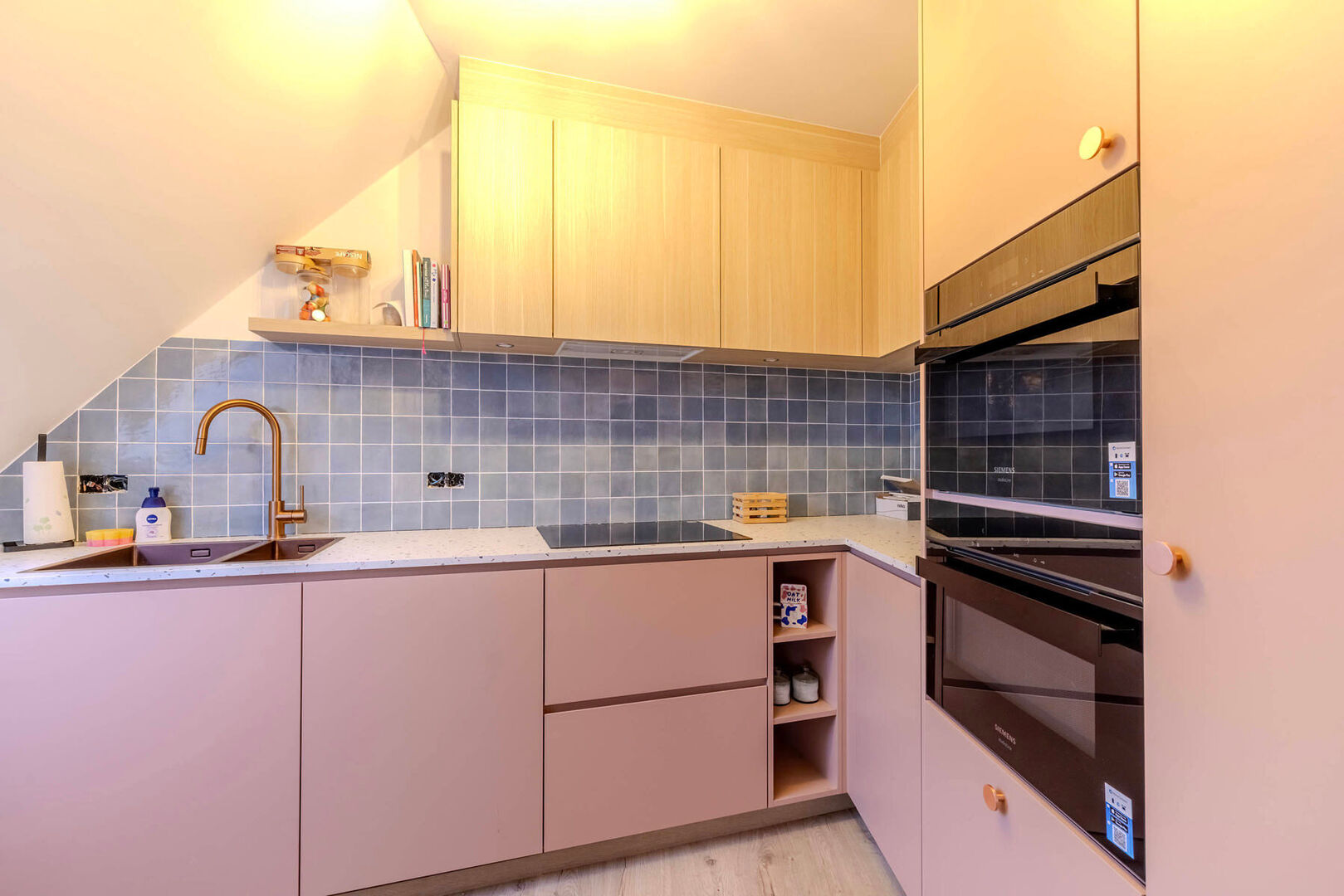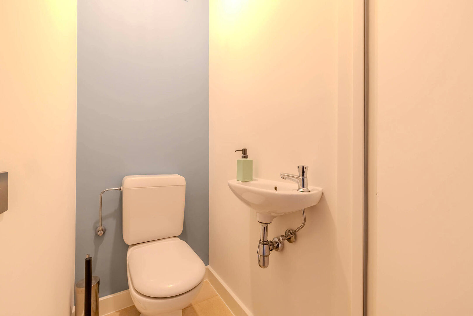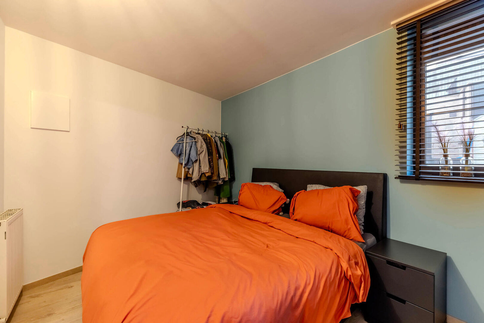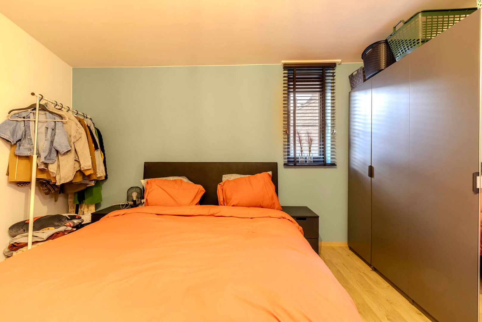 Indeling: inkomhal; apart toilet; toegang tot een privatief en achterliggend terras; gezellige leefruimte met hoge plafonds; ruimte bovenaan is momenteel ingericht als leeshoek + extra bergruimte; volledig vernieuwde en geïnstalleerde keuken (2024); masterbedroom; ensuite badkamer met lavabo, douche in bad en aansluiting voor WM en DK.